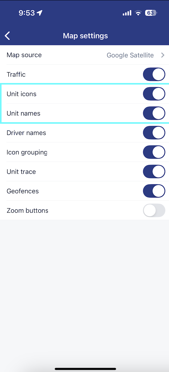 Yes, in the Map Settings section, you can toggle the display of unit names. If this option is disabled, the unit names will not appear on the map.